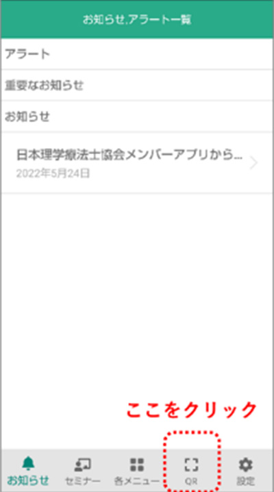 3)参加受付フロアにQRコードを提示いたしますので、JPTAアプリの『QRコード読込』をしてください。